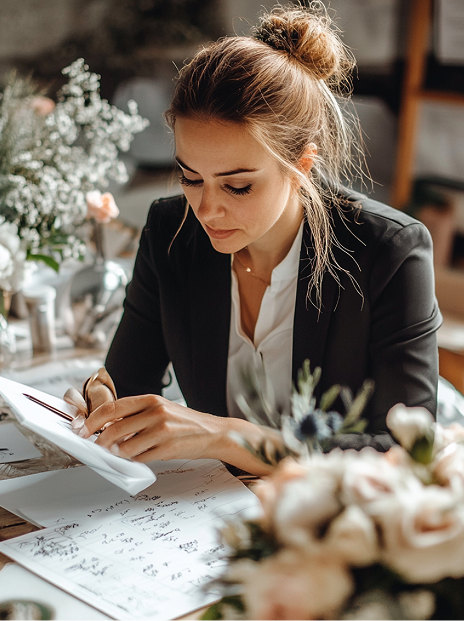 Elke bruiloft is anders, dus elk plan is maatwerk. Of jullie stijl nu landelijk, bohemian, chic of speels is, wij brengen jullie visie tot leven met creatieve flair.